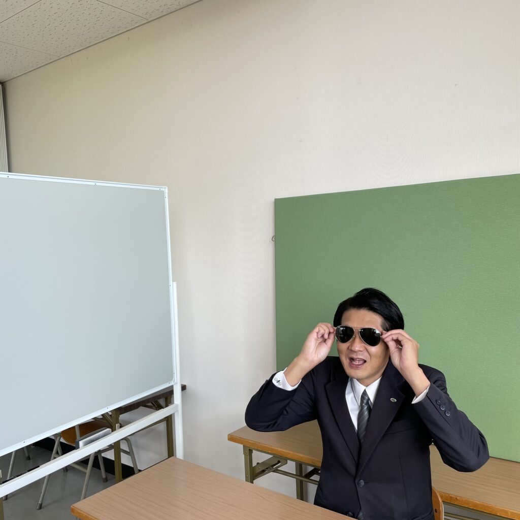 そのためにサングラスをかけて、山形先生には『鬼教官』っぽいイメージをお願いしての撮影でした。
