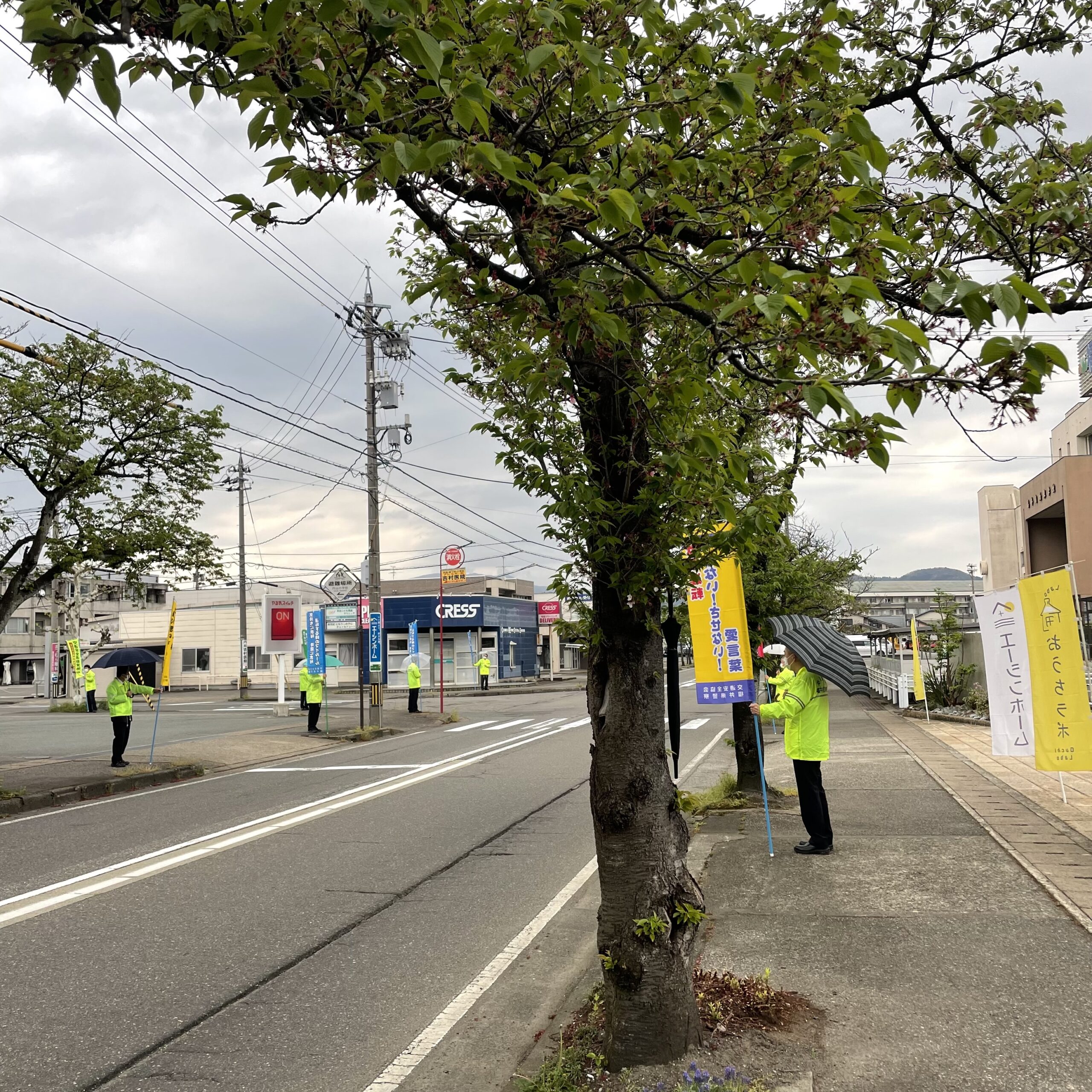 微力かもしれませんが、地域の交通安全に貢献できればと思い早朝からのぼり旗を立てております!