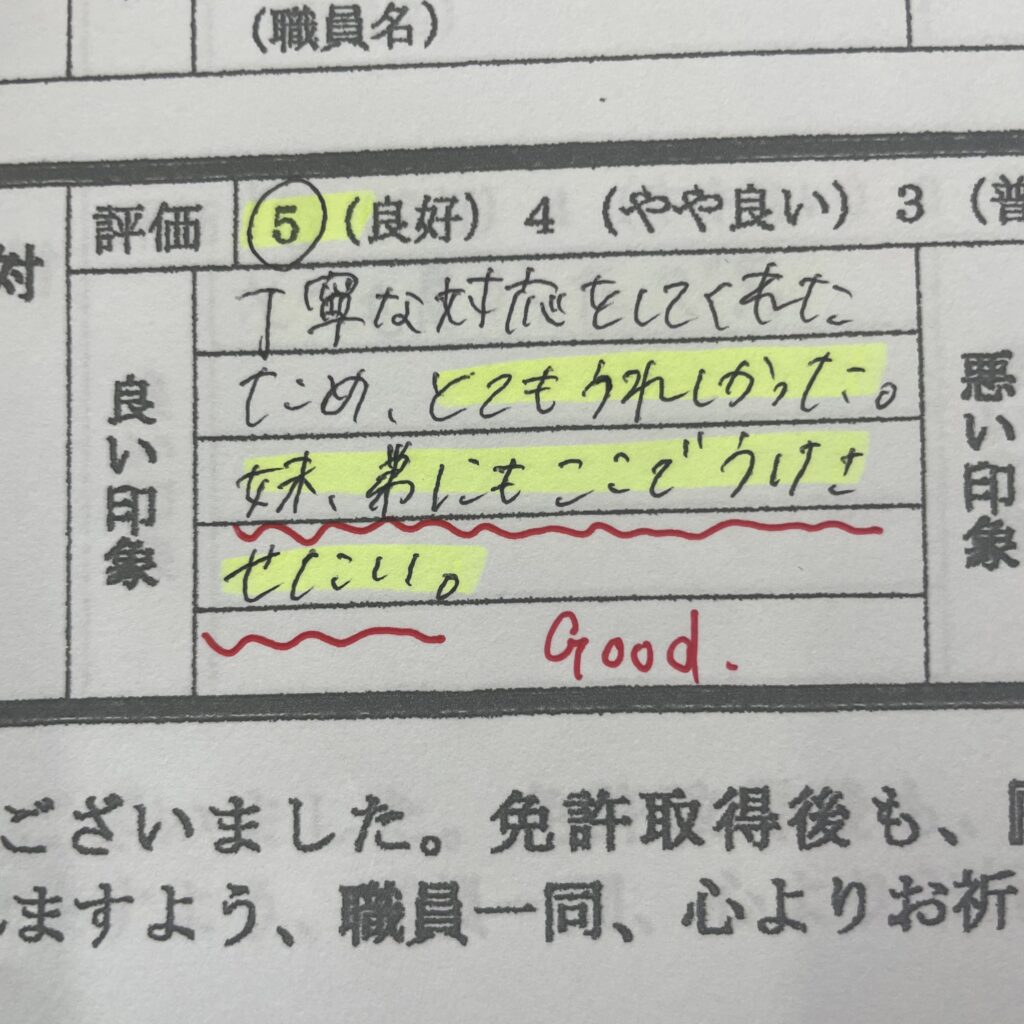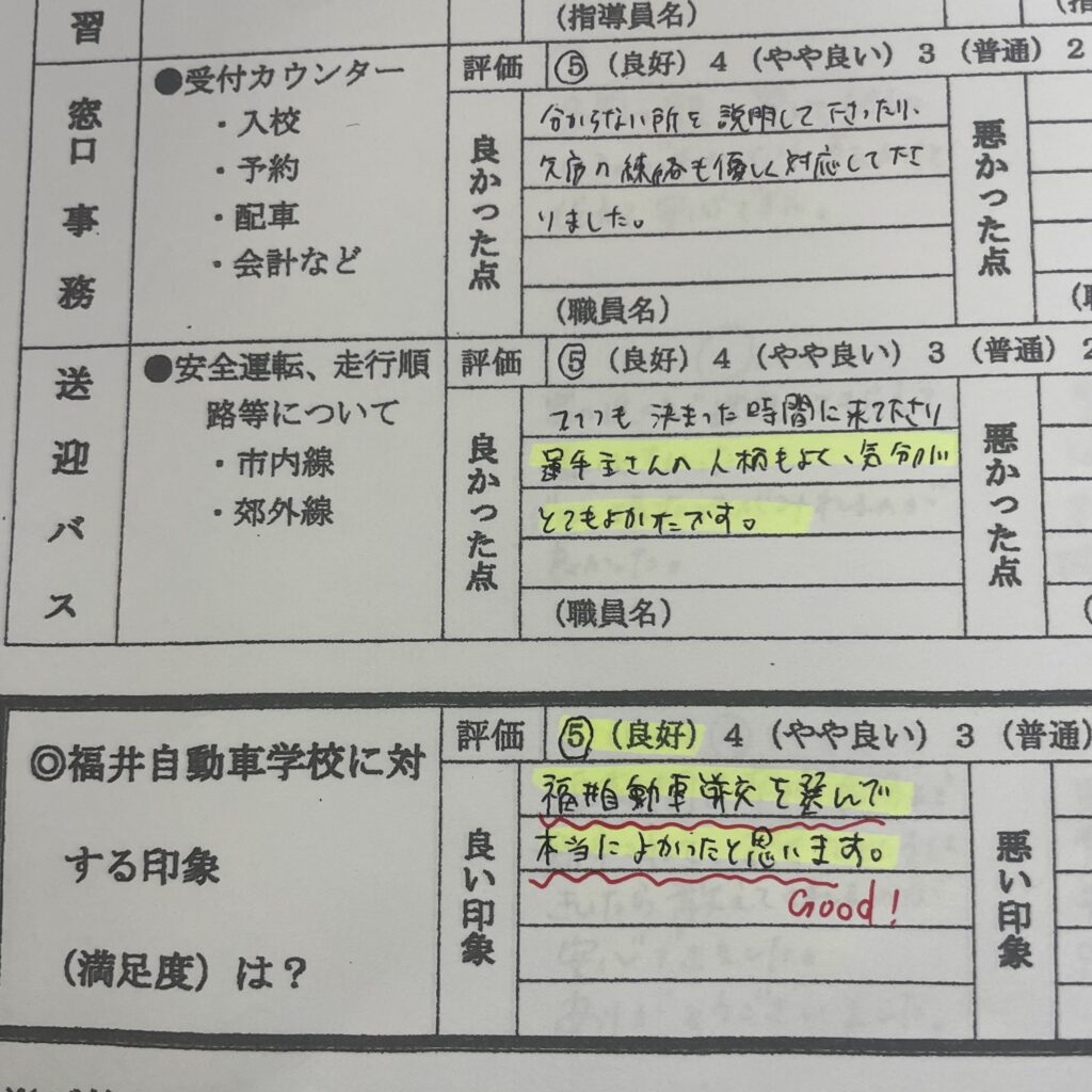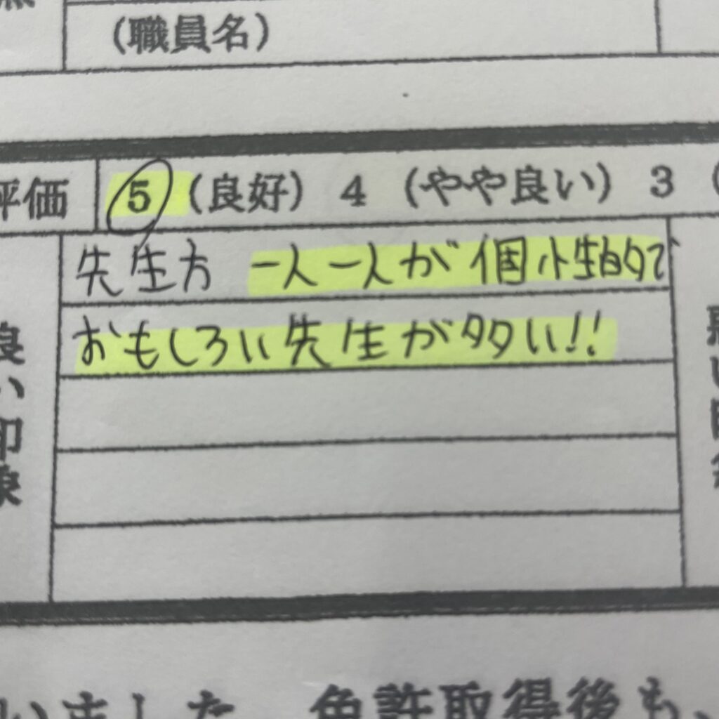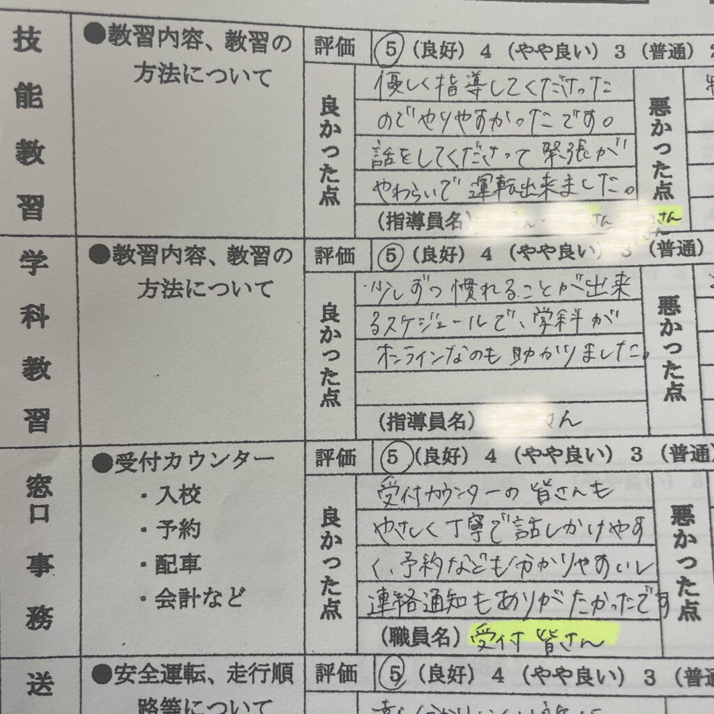 教習だけでなく、校内環境のお声があるとは思いませんでした!