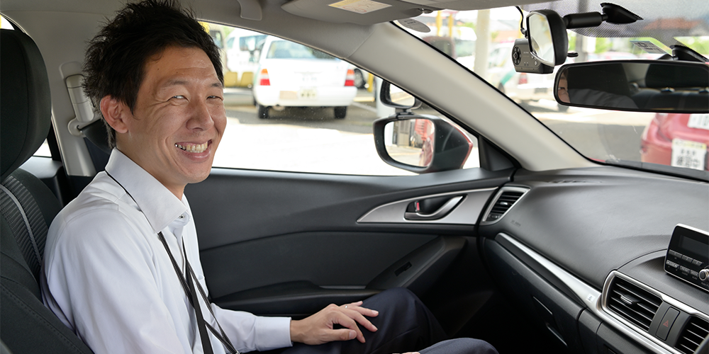 生徒さんがうまく運転できた時には、思わず『イイネ!』と声が出てしまい、自分も嬉しくなります。その時の生徒さんの笑顔を見ると癒され、一緒に喜びを共有できるのが何より嬉しいです。少しずつ自信をつけていく姿は、指導者としてのやりがいを感じます。