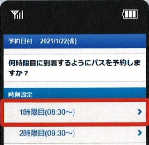 続いて学校行きの時間を選択します。教習時間に合わせて指定してください