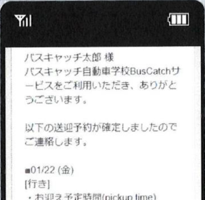 送迎前日の夜に送迎予定のお知らせメールが届きます。