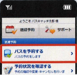 れんらくアプリのトップページから「バスを予約する」リンクを選択してください。
