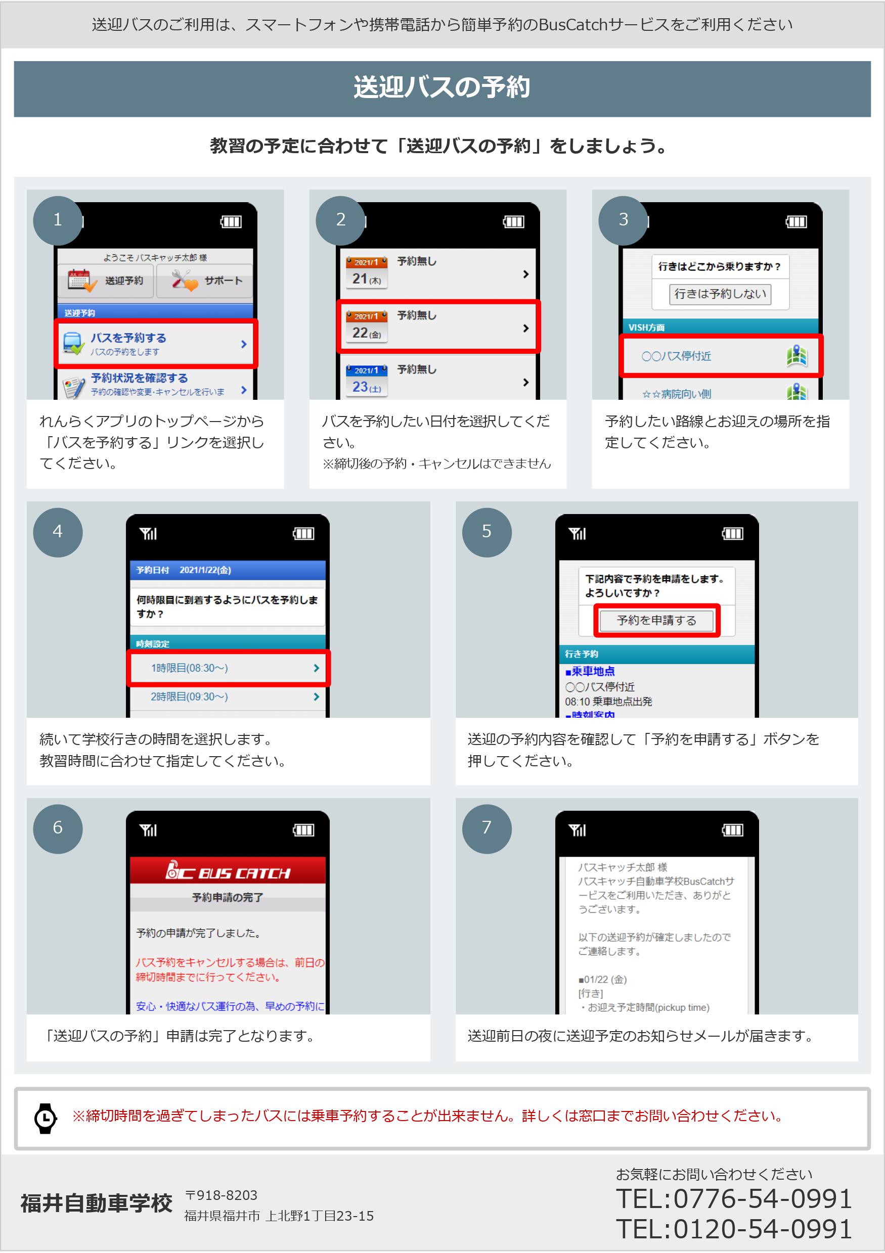 バスご利用希望の方は、事前に教習生番号の取得が必須となりますので、まずはお問い合わせください。