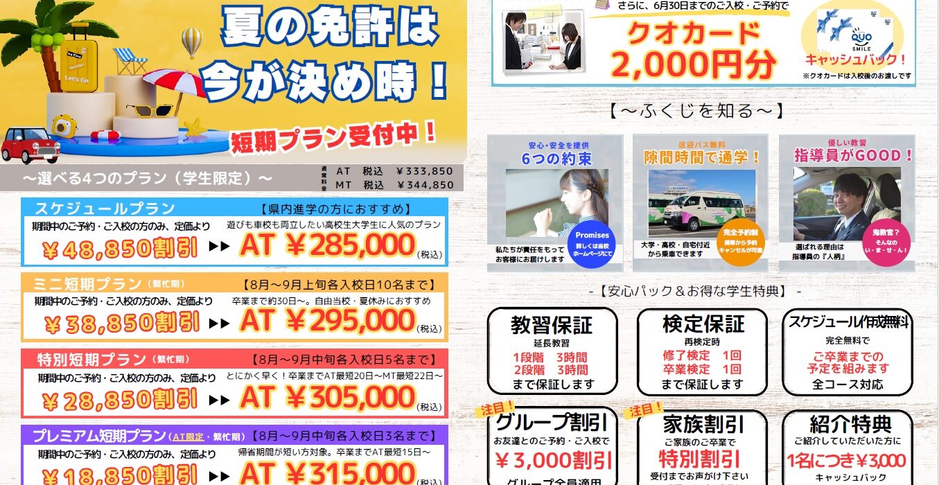 学生限定(普通車)キャンペーン実施中!