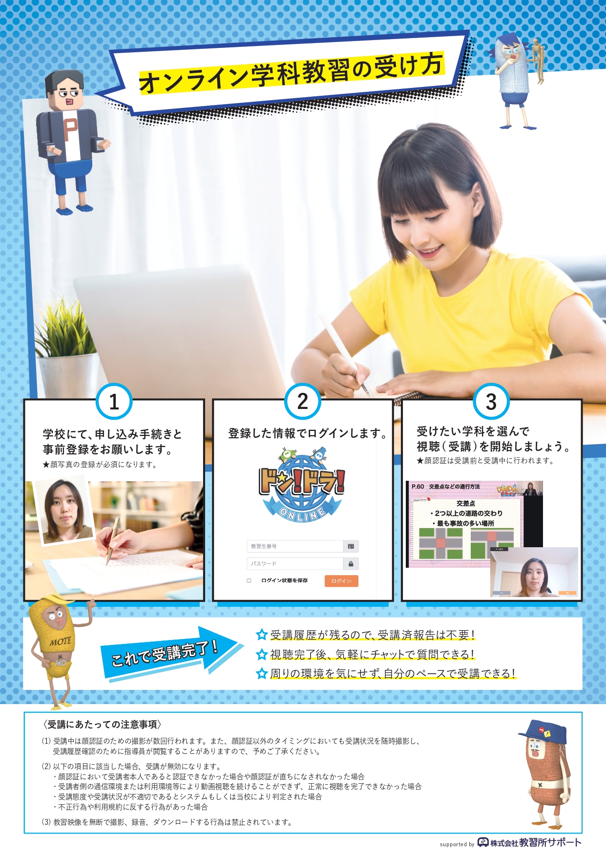 - オンライン受講をご希望の方は、受付にて申込書を記載・もしくは下記の申請フォームよりお手続き下さい